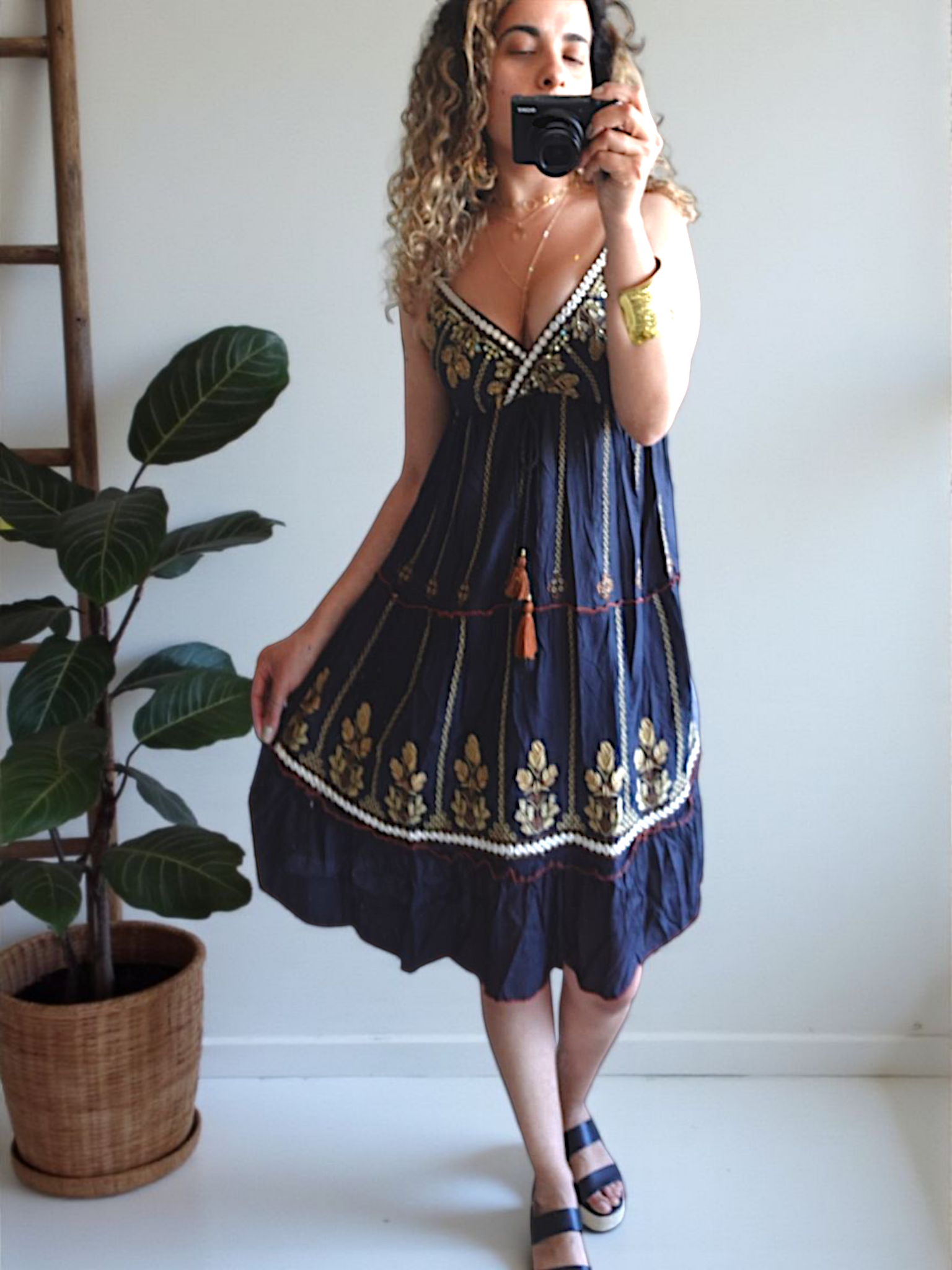 Vestido étnico unicolor